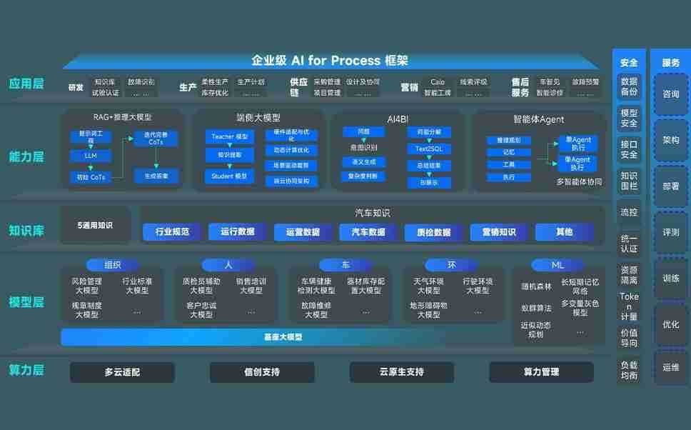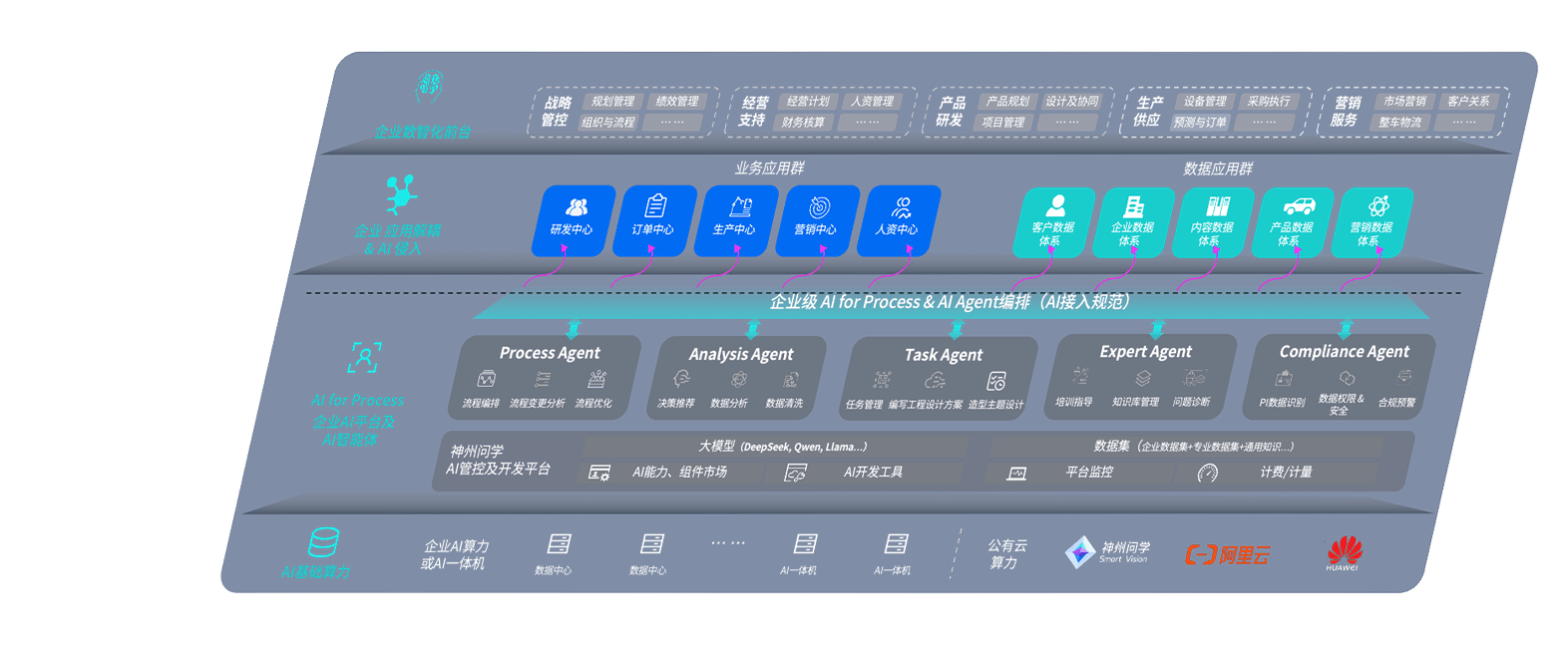 AG尊龙凯时问学智车解决方案是一套基于AI技术的汽车行业智能化系统,,覆盖从底层算力到顶层AI应用的全栈方案。。方案由算力层、、、、模型层和应用层组成:算力层,,方案支持多种一体机配置,,具备云端灵活部署、、多云适配以及动态优化计算资源的能力;模型层,,,AG尊龙凯时问学平台版提供了企业级AI应用一站式构建与管理平台,,,支持基于后训练强化技术的汽车企业专属模型的训练、、、评测和运营;应用层,,,,AG尊龙凯时问学DeepSeek版提供包括超级员工、、、、智能招采、、、智能营销、、、、智能客服、、、、AI for BI等一系列解决方案,,,可助力汽车行业实现数字化转型,,,,让管理更智能、、响应更敏捷。。。